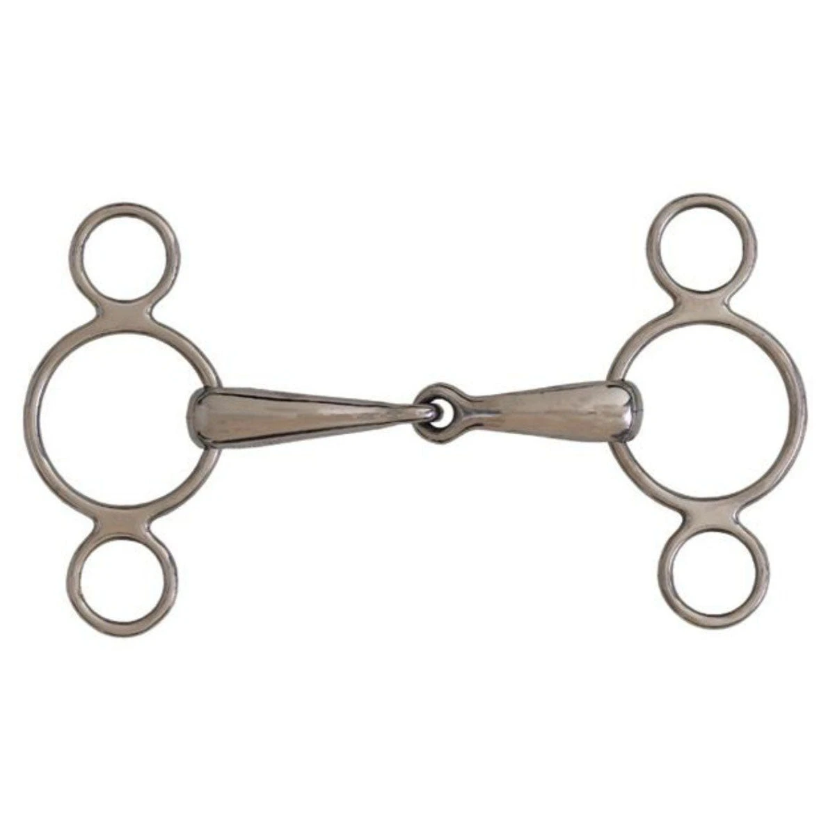 We love the Centaur® Stainless Steel 2-Ring Elevator Gag Bit because it helps lighten the front end of your horse while staying soft. The bit adds greater lateral control for turning when leg aids are not enough. A great bit for training with an experienced rider.
