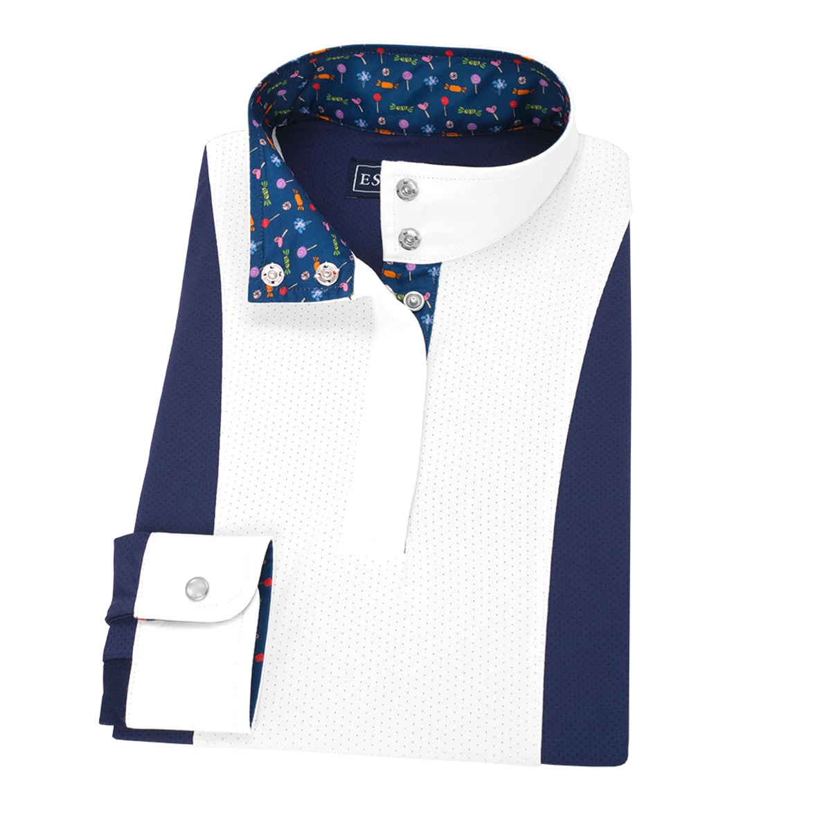 New this season, our Luna Performance show shirts artfully combine the classic good looks of a crisp white shirt in the show ring with a colorful appeal. Paired with a show coat, the white front panel, collar, and cuffs make a crisp, clean presentation in the ring. Without a coat, the color body provides a flattering feminine silhouette and the practical advantage of staying clean throughout the day. Expertly tailored of high-performance, moisture-wicking fabric with all the fine details you expect from Essex Classics, Luna is now available in 5 colors and a selection of fun trim options.