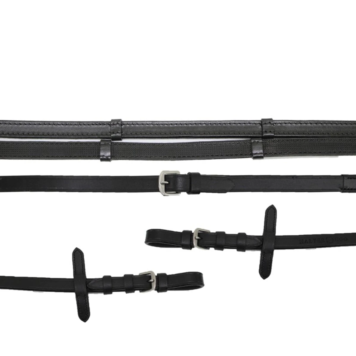 The perfect choice for a clean look with a grip! Soft leather reins are 5/8″ wide, thin rubber lining. Leather finishings and Stainless steel buckle ends.