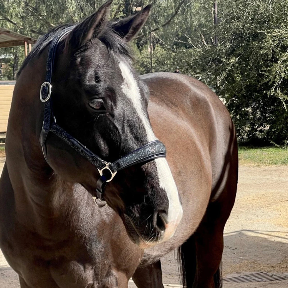 These gorgeously styled bridles are all around amazing because they are designed with your horse’s comfort in mind, this gorgeous navy leather halter matches the Munich snaffle bridle.