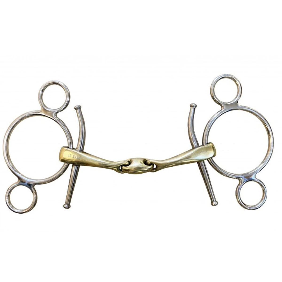 Full cheek 3 ring bit with standard 17 mm thick cannons made of German Silver (65% copper, 23% zinc, 12% nickel) a relaxing and solid alloy. This bit has a gag action. The full cheek 3 ring bit has a more surround action than the classic one.
