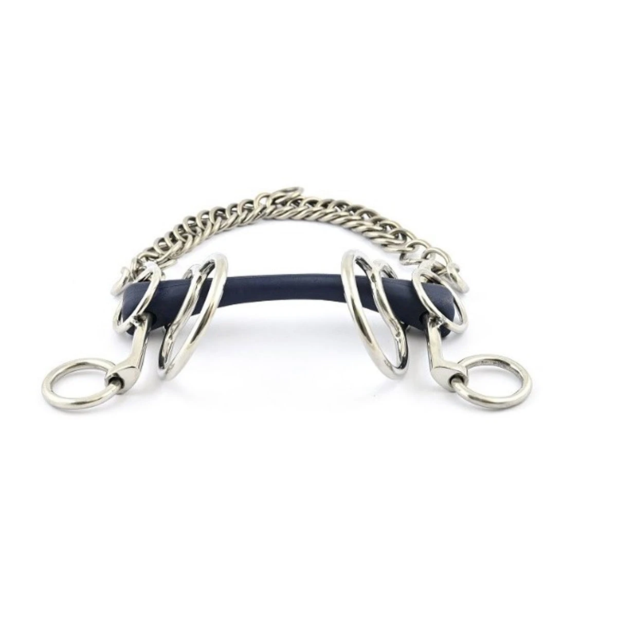 This bit can be used directly with two reins or bit loops. A curb chain comes with the bit and can be replaced by a nylon or a leather one. The straight flexible cannon helps horses to take a good contact on the bit so it also helps them stretch their back while working.