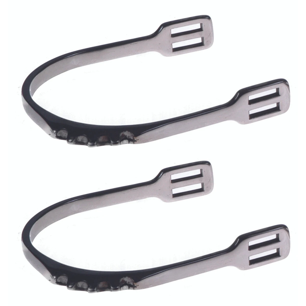 Stainless steel jumping spurs with three teeth.