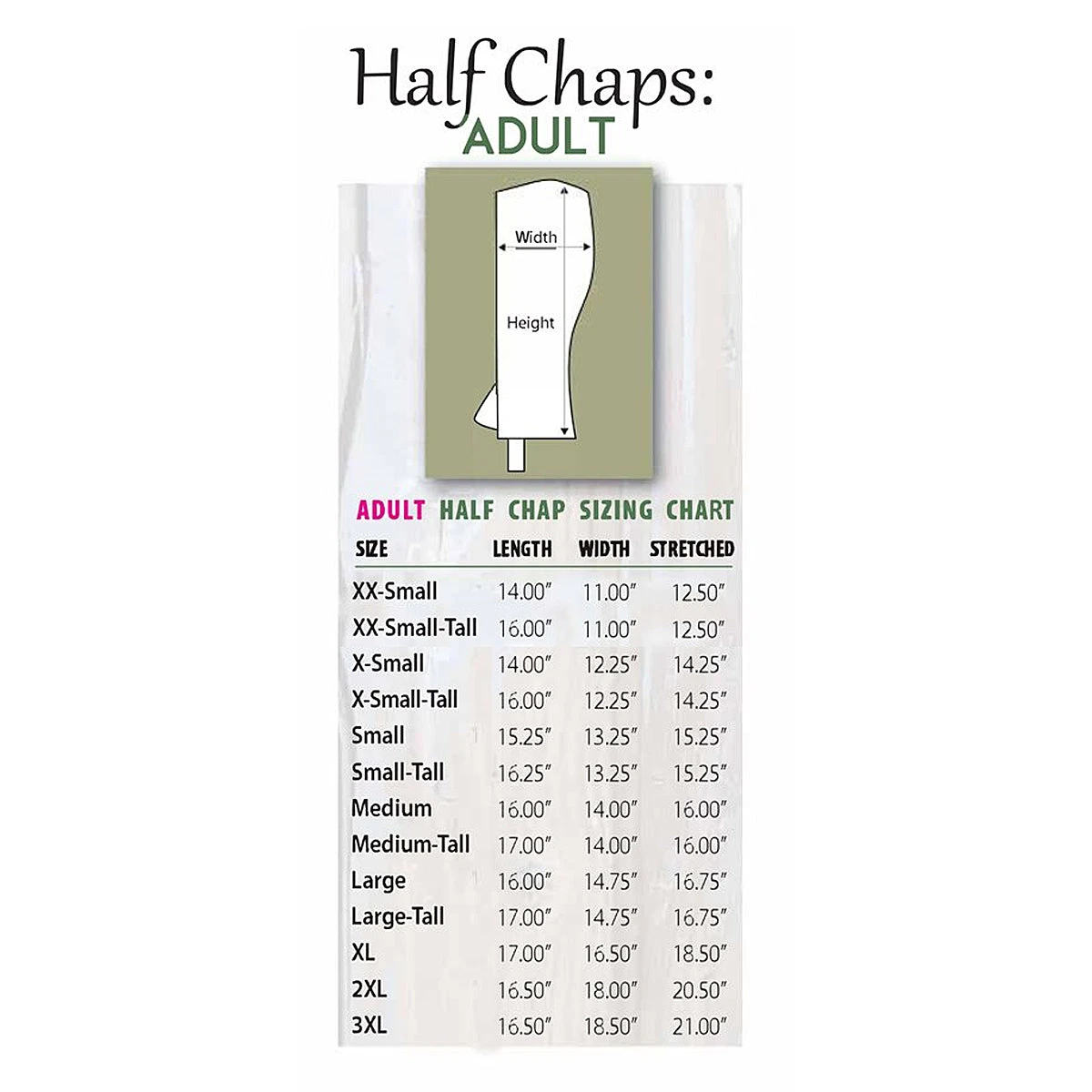 So comfortable, you’ll forget to take them off! Perri’s Professional Half Chaps are crafted from soft, premium quality calfskin. Featuring a reinforced inner leg and elasticized leather panel, providing a near custom fit! The stretchable section helps the chap form to your leg for peak performance and comfort. These chaps zip easily from top down and have snaps at the top and bottom to keep the zipper secure while an elastic foot band keeps the chaps in place while riding.
