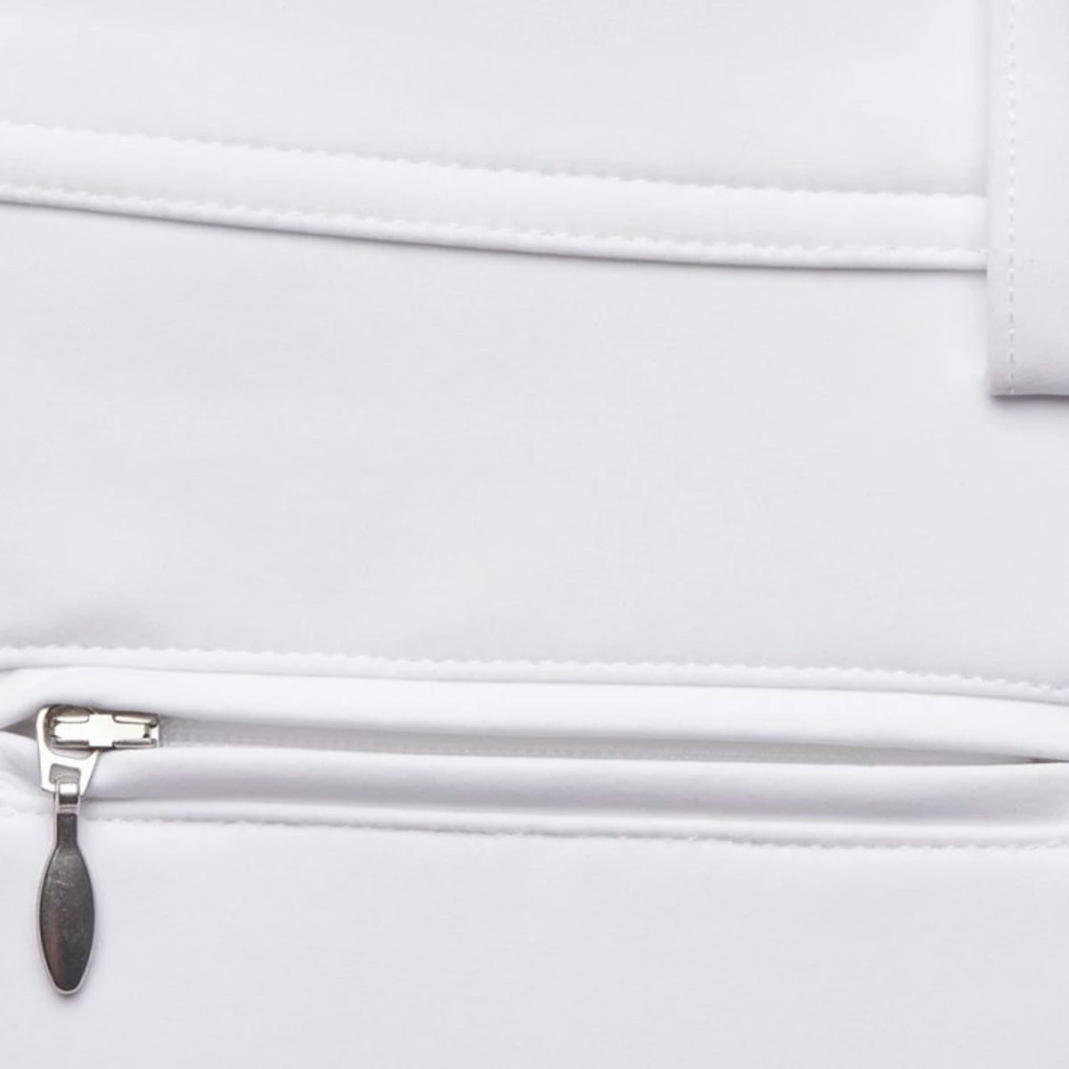 The Clotilde breeches offer a second skin effect for optimal comfort and fit. The elasticated fabric guarantees high breathability and wind protection. The silicone knee grip ensures stability and adherence in the saddle. A horizontal accordion panel across the lumbar area helps to eliminate gapping and the dreaded ride-down in the back as you go about your show day tasks. The compression fabric provides a flattering effect for the rider, while the elastic tape inside the belt is equipped with silicone which prevents the shirt from rising. Thanks to the special construction of the fabric the Clotilde breeches offer protection against ultraviolet rays and are finished off with a sock bottom that will effortlessly keep your breeches securely in place. The breeches also display front slash zipper pockets and are embellished with a subtle Swarovski® Samshield logo on the rider’s thigh.