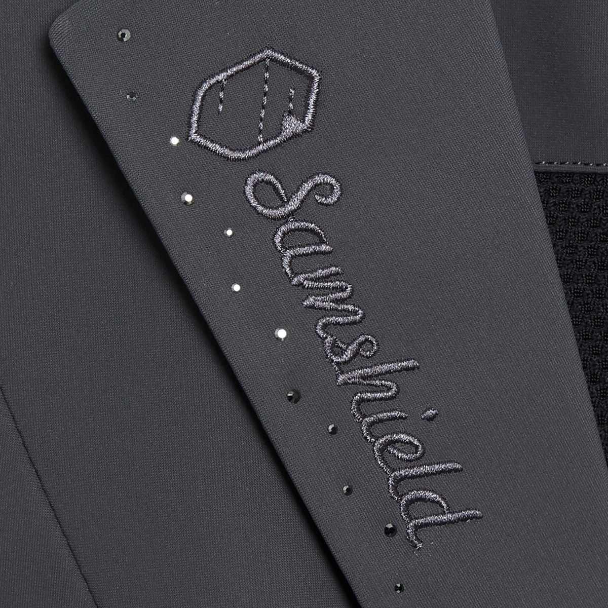 The Victorine Crystal Fabric competition jacket is designed to provide comfort and technical performance to riders. The tailored fit and asymmetrical tailoring (the front is cut shorter than the back) ensure a perfect fit, elegance, and comfort.