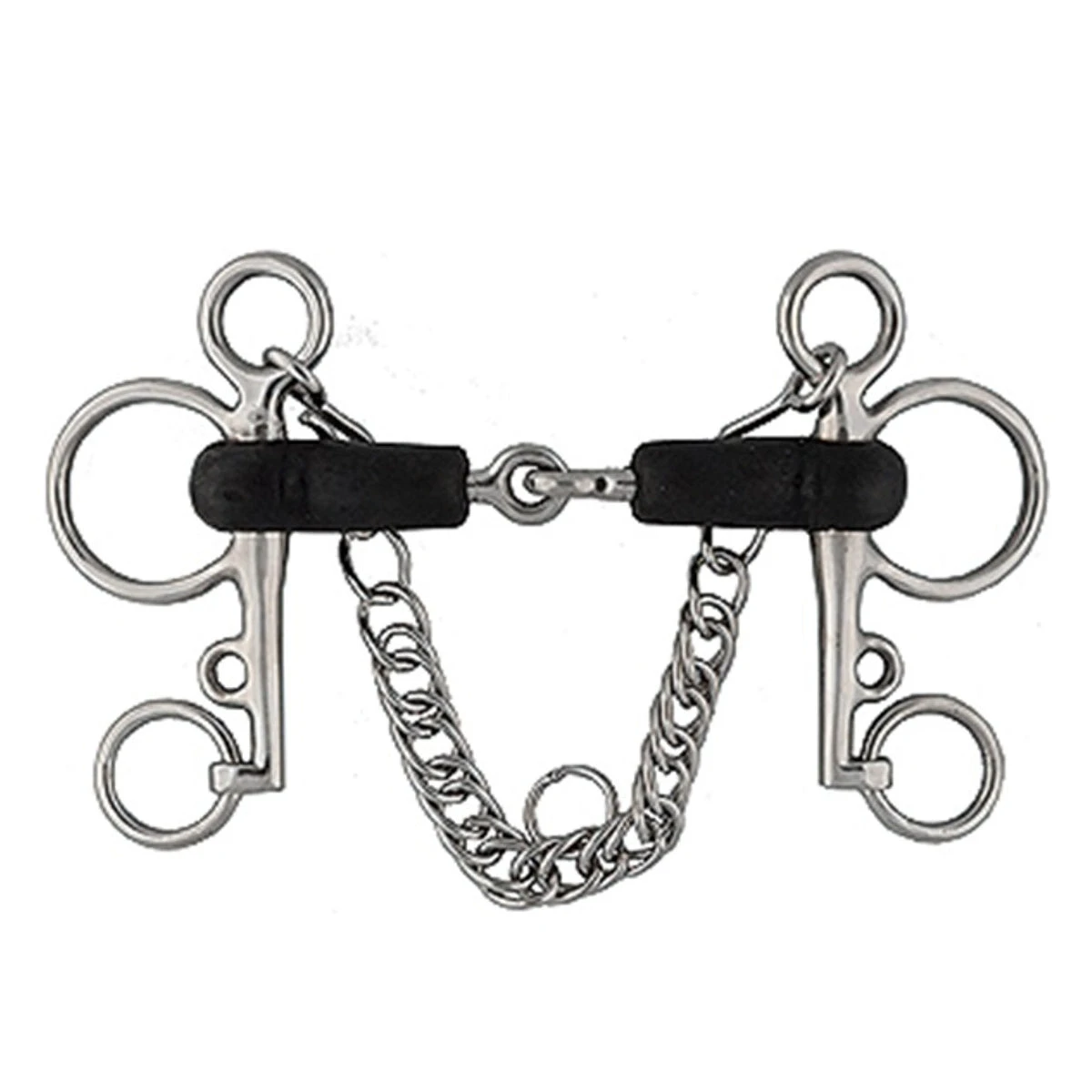 Stainless steel Rubber Mouth Pelham Bit has jointed rubber mouth with mouth thickness of 21mm and stainless steel curb chain.
