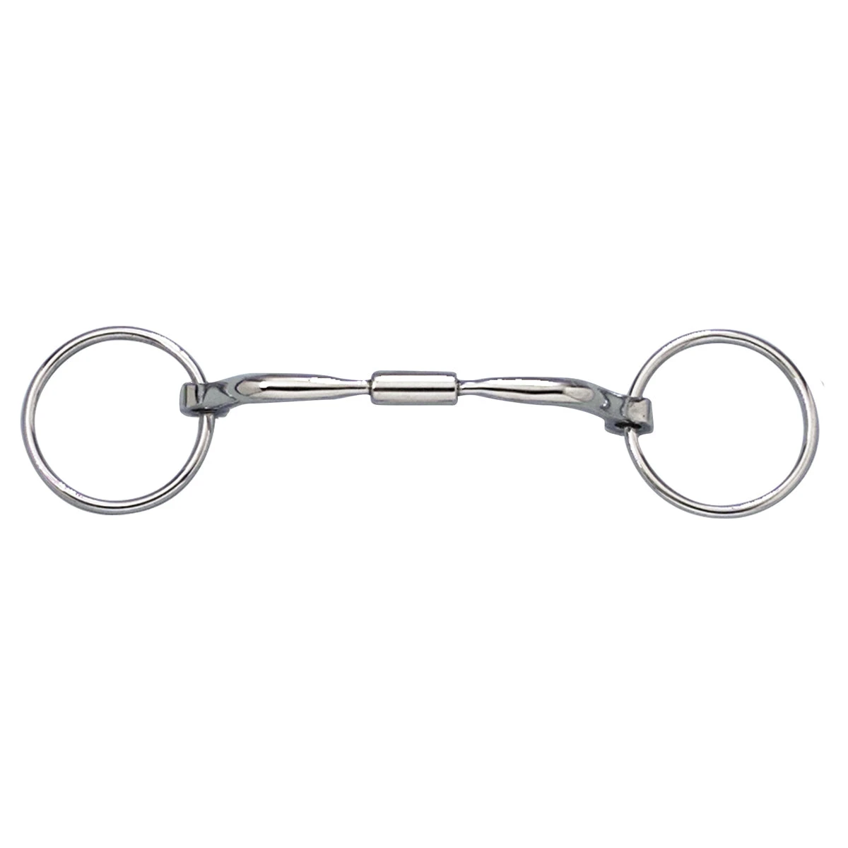 Notes: The loose ring is generally considered one of the most non-interfering cheek pieces because the mouthpiece slides freely around the ring. However, the play in the mouthpiece can make it difficult for a horse to find your hands as the mouthpiece is in continual motion. The movement of the mouthpiece can also exaggerate or create a busy mouth in young or anxious horses. It is best suited for more advanced horses fully schooled in leg and seat aids as well as rein aids.
