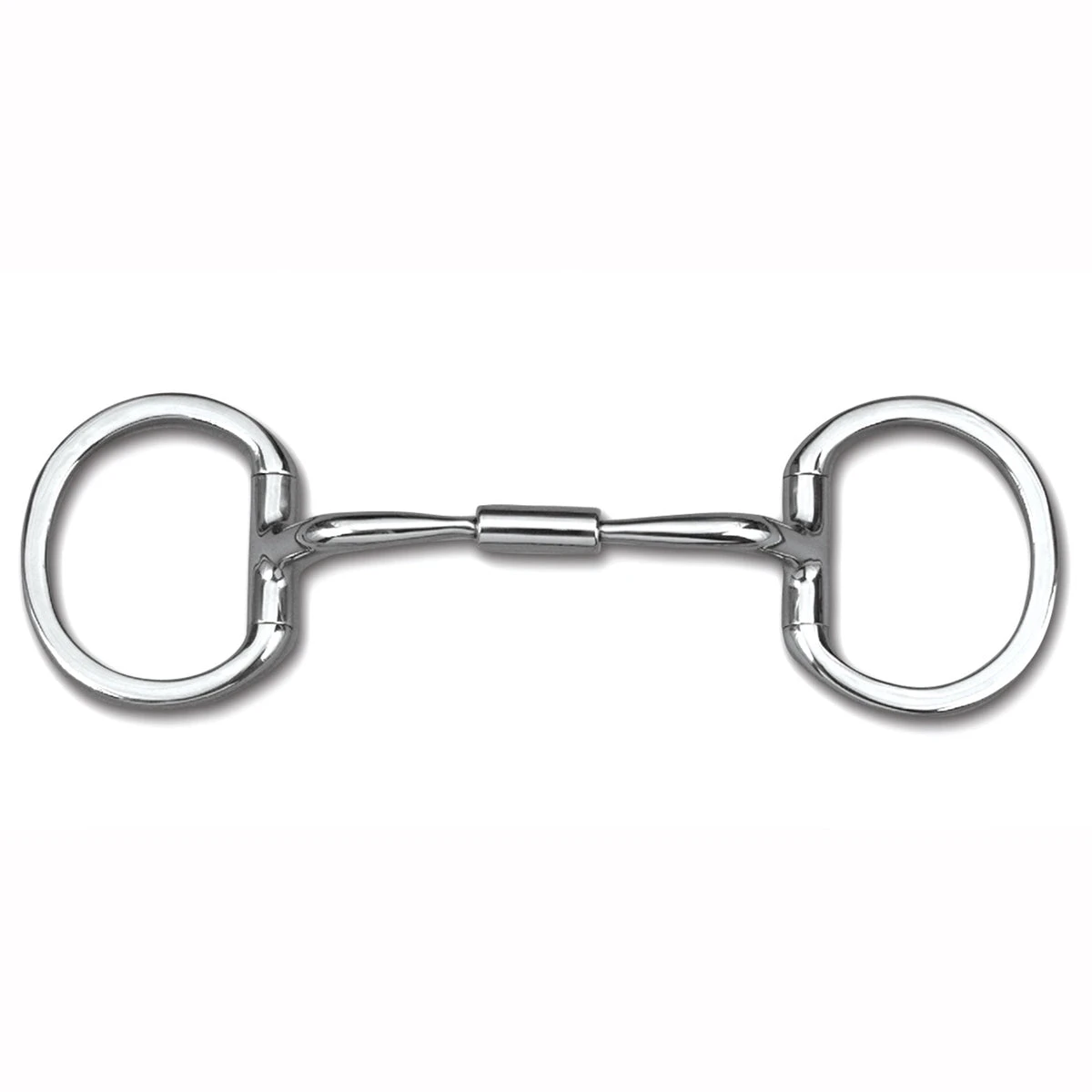 An eggbutt is a traditional cheek style that keeps the mouthpiece from draping on the tongue, providing a more direct signal than the loose ring. The straight side of the eggbutt will not pull through the mouth and does not pinch. For a more versatile version, see the eggbutt with hooks.