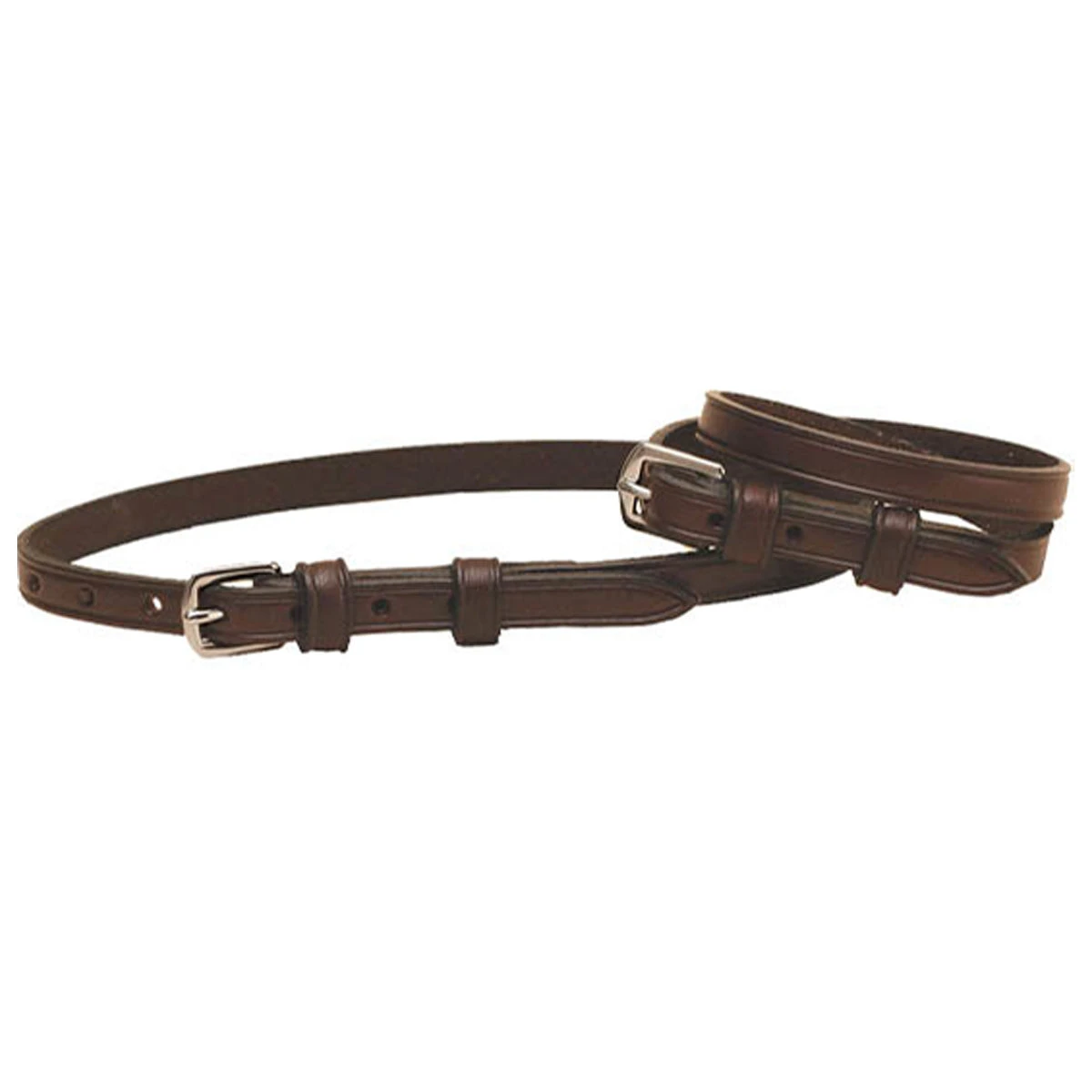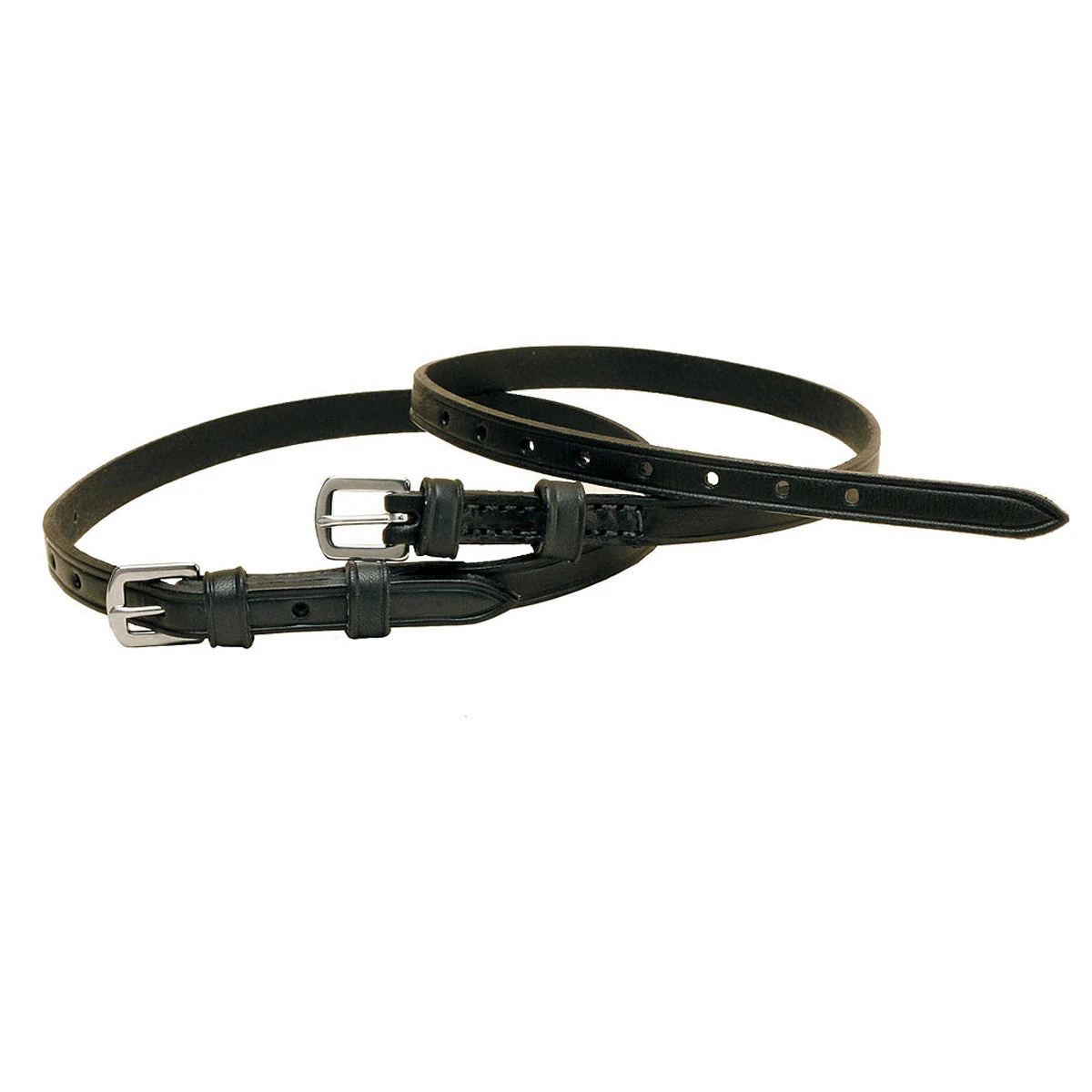 The Tory Leather Deluxe Creased Spur Straps have stainless steel buckles and double keepers.