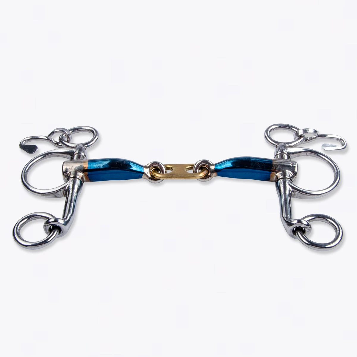 The Dr. Bristol mouthpiece is a double-jointed mouthpiece with a flat insert. During relaxation, this insert lies flat on the tongue and exerts light pressure. When the horse hits the bit with the tongue and threatens to take over control, the intermediate piece tilts, causing the bit to have a sharp effect on the tongue. This bit is not suitable for inexperienced riders.