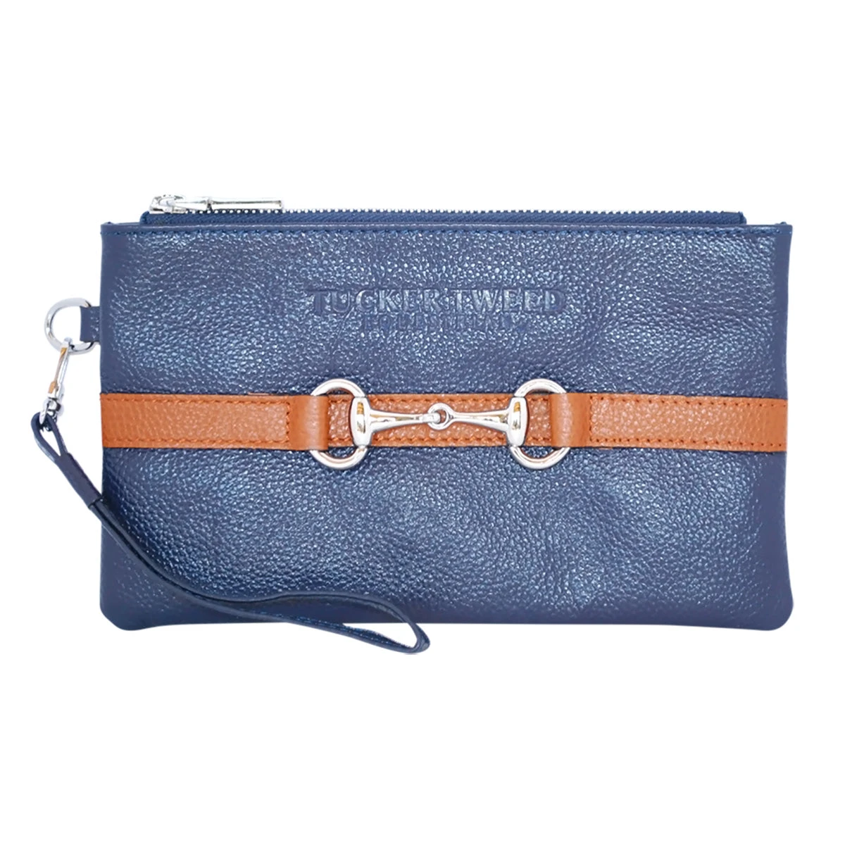 Equestrian meets convenience, in classic Tucker Tweed style. The Wellington Wristlet pays tribute to the 12-week annual Winter Equestrian Festival, a destination for the world’s finest horses and riders. Complete in fine pebble-grain leather, this rider-requested style is available in 16 colors with solid or contrast color accents and snaffle bit detail. The wristlet interior is lined completely in signature red with leather accents, featuring 6 card pockets, a bill pocket, a private zipper pocket, and room for the largest of cell phones. A removable wristlet strap can attach on the side, on the zipper, or remove for clutch carry. An adjustable shoulder strap is also provided for the crossbody carrying option. Versatile, simple, equestrian luxury.