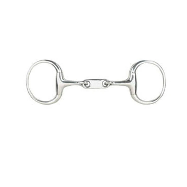 We love the Korsteel Stainless Steel Dr Bristol Eggbutt Snaffle Bit because this bit works well on horses that pull or get strong. The eggbutt snaffle has fixed, oval-shaped rings offering consistent contact. The flat lozenge centerpiece is set at an angle therefore causes a sharper more pronounced pressure on the tongue.